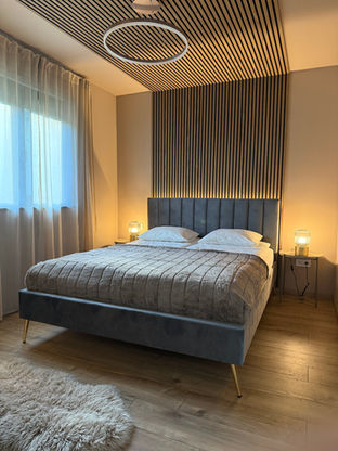 A ház négy főnek kényelmes. 2 hálószoba, 2 franciaágy, nagyméretű jacuzzi és szauna.